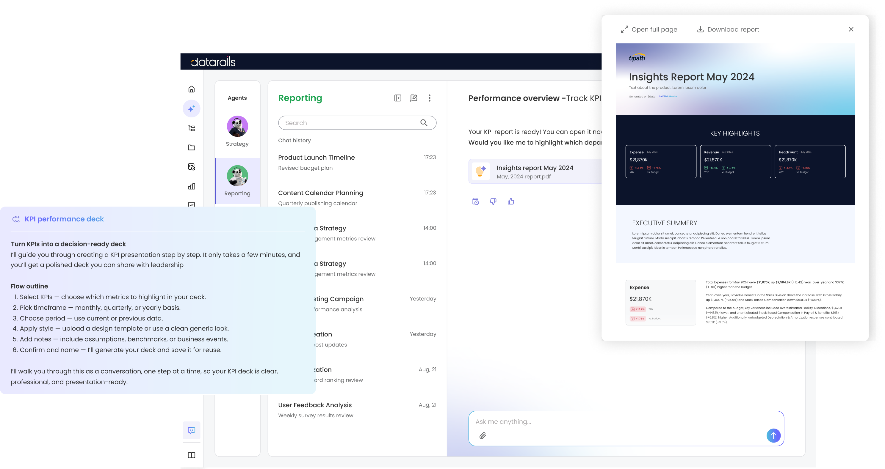 Datarails is the AI-native finance operating system providing a single source of truth for the CFO's office across FP&A, cash management, spend control, and month-end close. Through seamless data consolidation, uniting financial and operational data, Datarails is the unified finance platform where all workflows and data come together to deliver actionable insights for businesses. As the most flexible and scalable solution, Datarails lets you stay within Excel and our web-based platform, transforming the CFO's office into the home of business insights for any business, in any sector, at any stage.