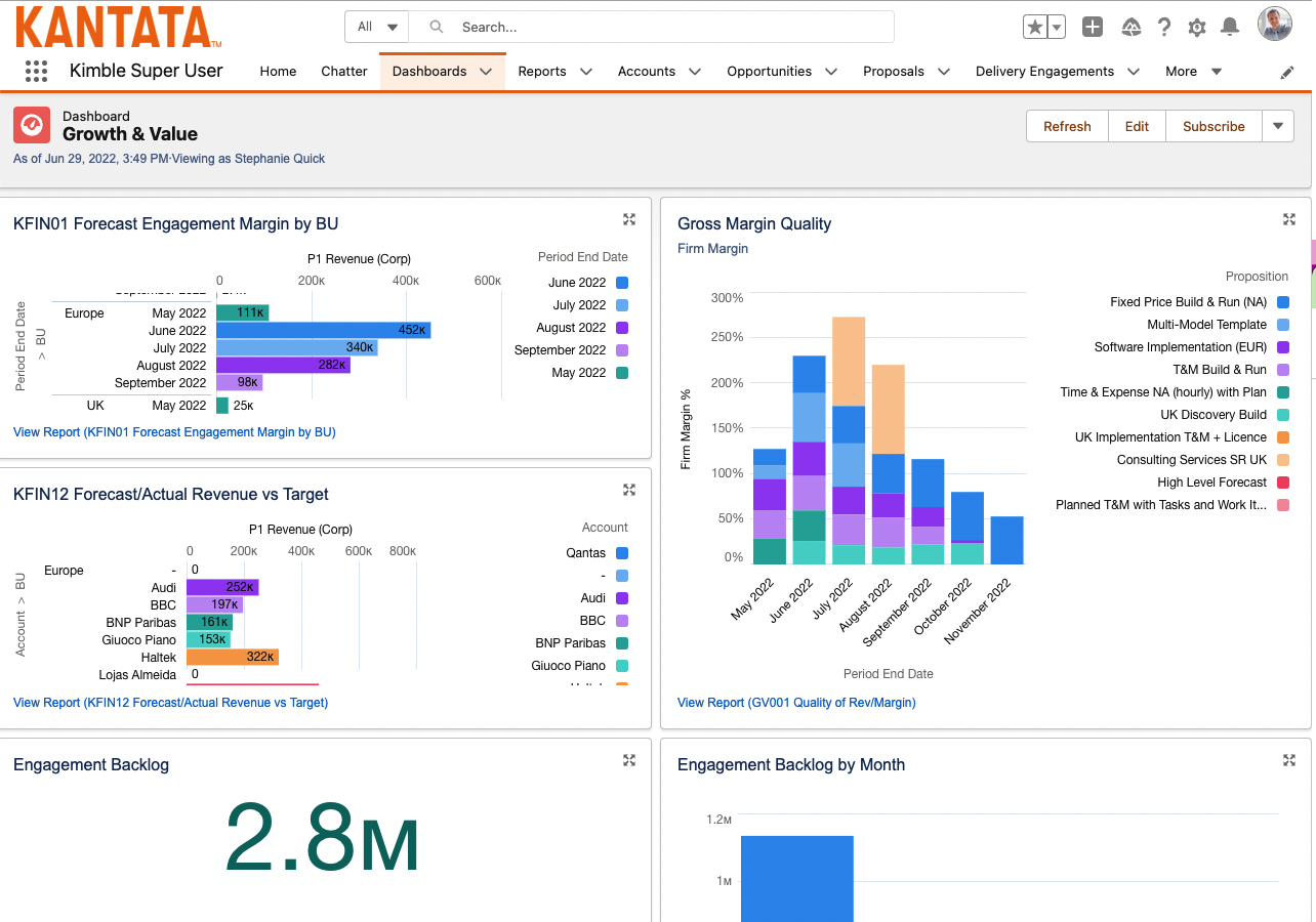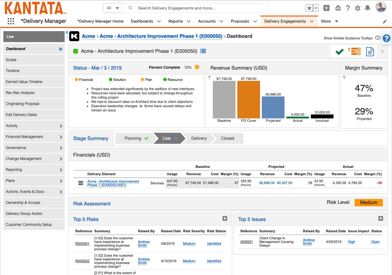 By leveraging Kantata SX, Kantata’s Salesforce-native solution, professionals gain access to the information and tools they need to win more business, ensure the right people are always available at the right time, and delight clients with project delivery and outcomes.