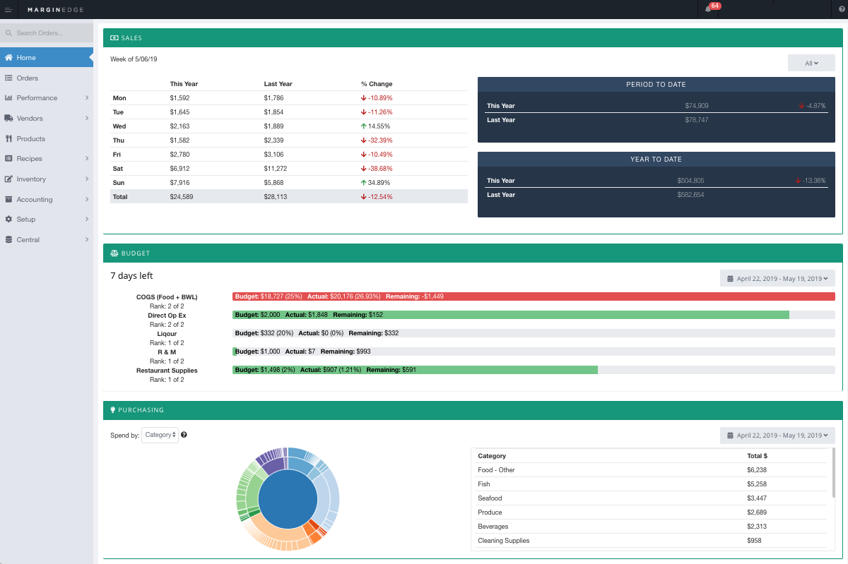 MarginEdge is a leading restaurant management software that gives operators real-time reporting while eliminating back-office paperwork. With MarginEdge, operators can track food and labor costs in real-time, automate invoice processing, and manage inventory and recipes from one central platform.