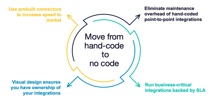 Integrations can be implemented, maintained and scaled significantly faster and at a substantially reduced cost.