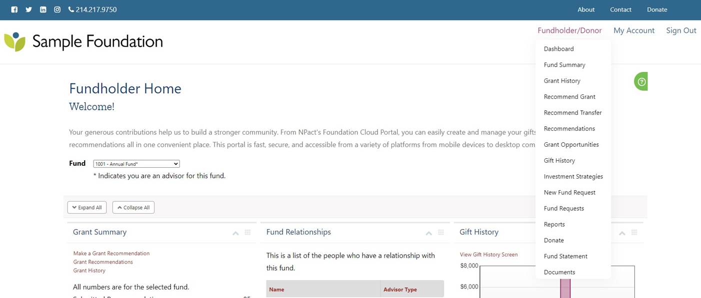 Foundation Cloud is NPact’s flagship cloud-based donor advised fund, grant management, scholarship, and community portal application suite designed, developed, and produced by industry experts with 20+ years of experience working with Foundations.