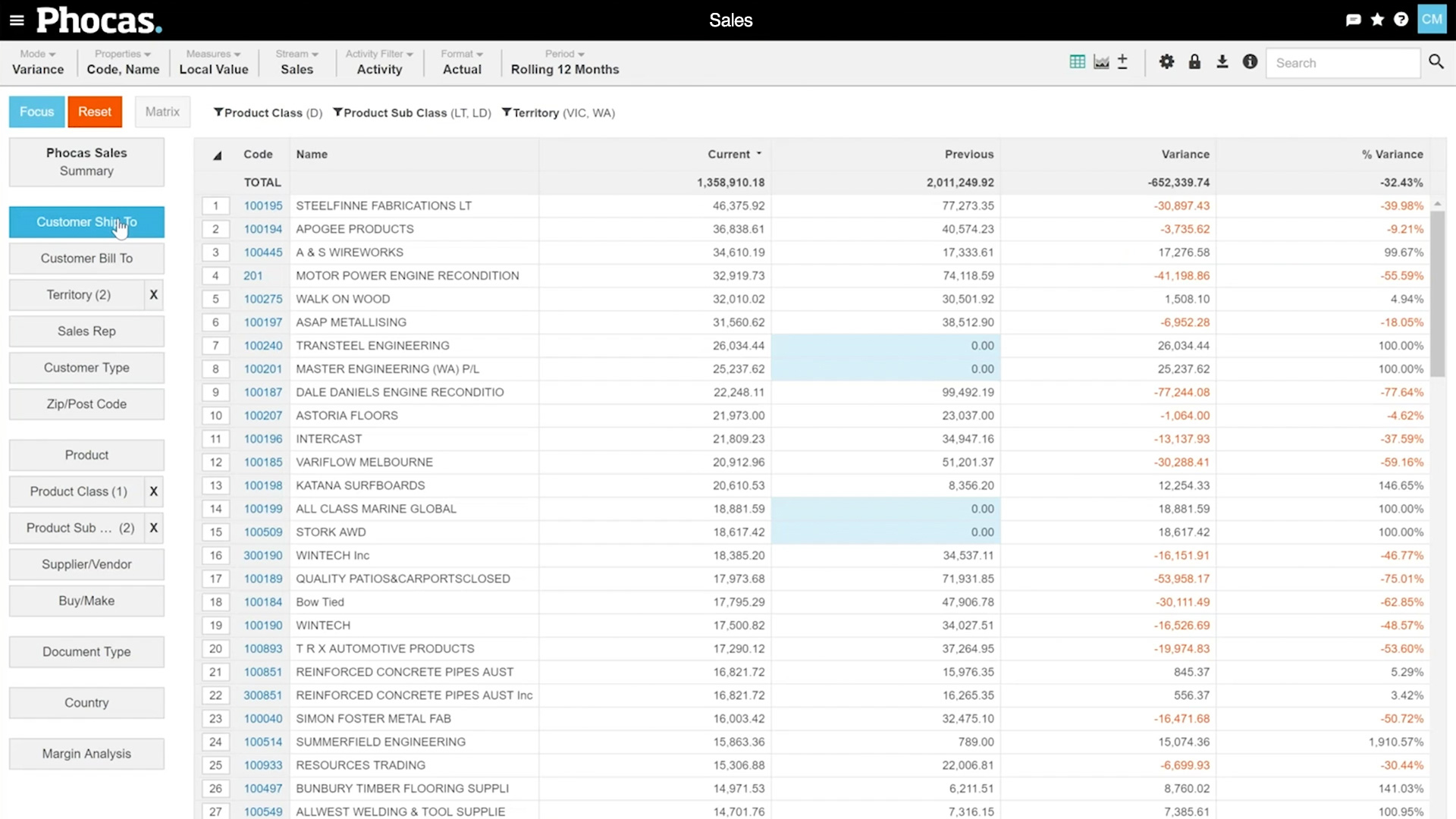 Phocas makes it easy to drill down through all levels of Sage Intacct data from high-level visual summaries into the underlying data and arrive at insights to make better decisions. Phocas is preferred by non-technical people from sales to purchasing to executives.