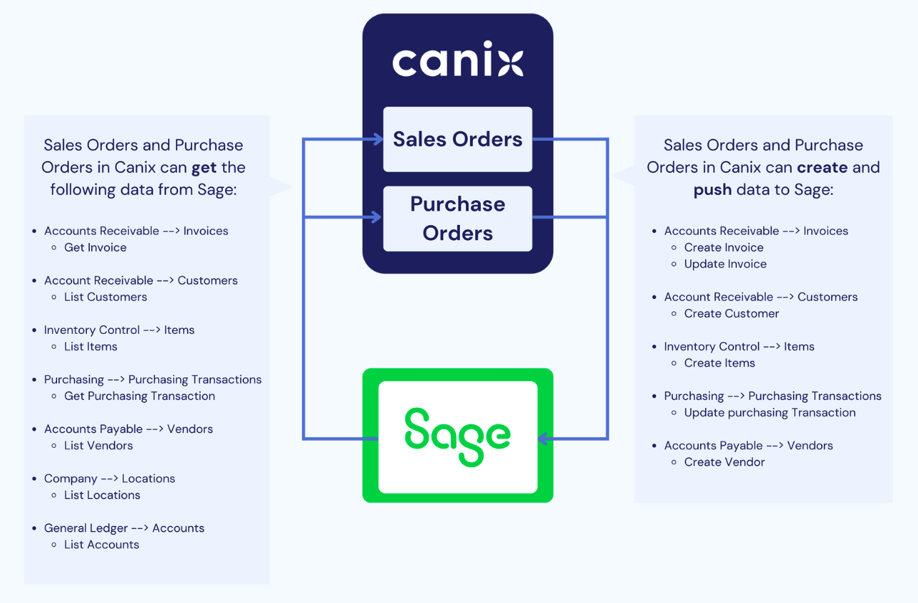 Send Canix Purchase Orders, Sales Orders and payments to Sage Intacct.
