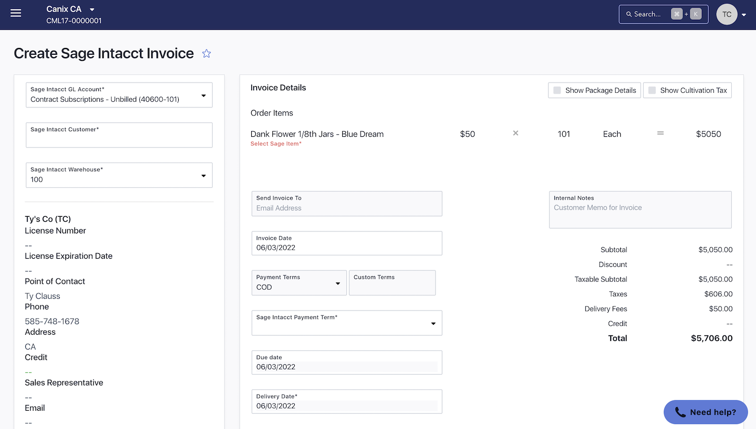 Canix is a cannabis ERP system that integrates with Sage Intacct to seamlessly send Purchase Orders, Sales Order invoices, and payments directly to your general ledger in Sage Intacct. Deal with returns frequently? You can process Sales Order returns as well.