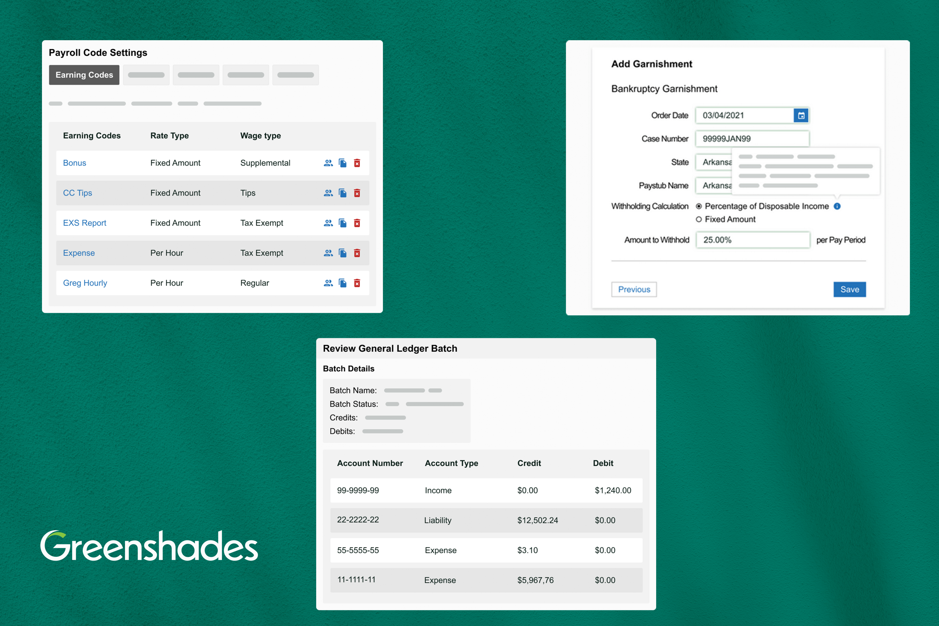 Greenshades delivers a flexible and configurable Payroll, HR, and Tax solution that streamlines payroll processing, ensures compliance, and simplifies complex tasks. For Sage Intacct users, this integration is completed through bi-directional syncing of General Ledger accounts, allowing you to process payroll directly within the platform.