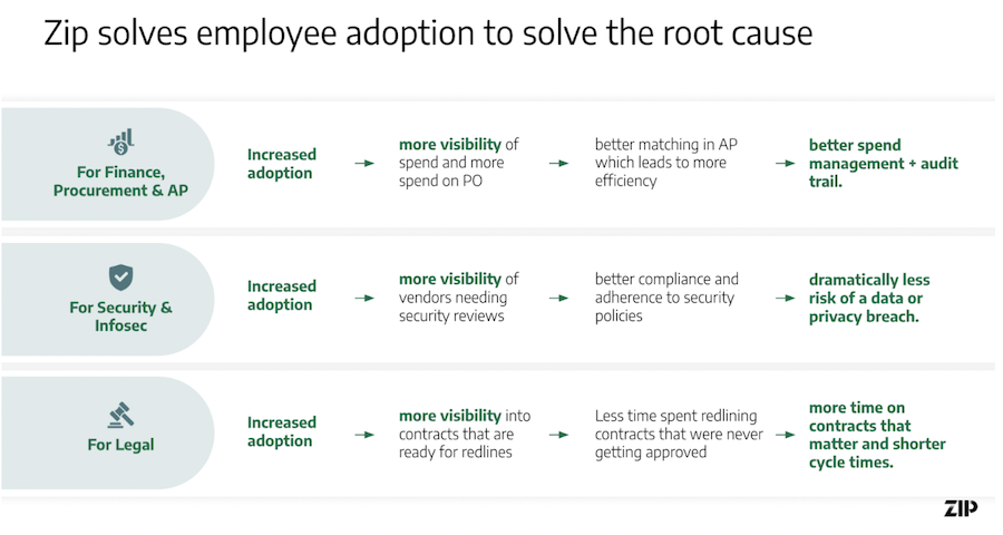 Zip is the world’s leading procurement orchestration platform, empowering businesses to accelerate the procurement process, mitigate risk, and drive growth by offering a single front door to unify the teams, tasks, and tools involved in working with suppliers. With Zip, businesses can maximize employee adoption of purchasing policies and increase spend visibility and control. As the leading solution for optimizing business spend, Zip's AI-powered platform is trusted by hundreds of leading enterprises worldwide, including Anthropic, Arm, Canva, Coinbase, Discover, Dollar Tree, Instacart, Lyft, Northwestern Mutual, Prudential, Reddit, Sephora, Snowflake, and Sprouts to maximize the ROI of every dollar. To learn more, visit ziphq.com.