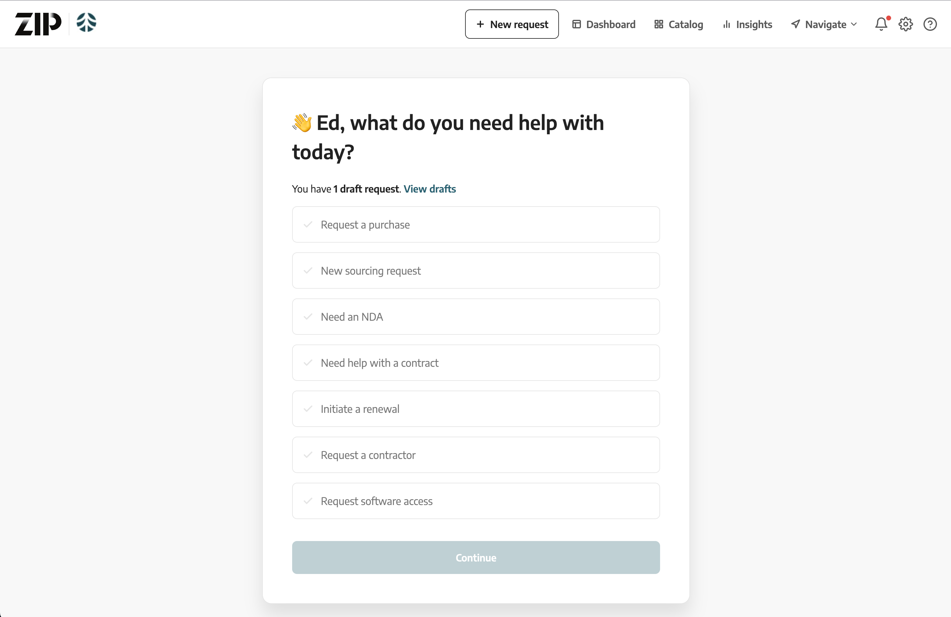 Zip intake-to-procure provides one place to initiate, track and approve purchases and vendors