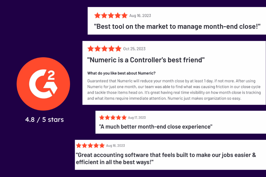 Ease of Use: Numeric is laser-focused on building the easiest way for teams to close the books, pairing powerful tools with an intuitive interface that enables teams to close faster on Day 1 using the product.