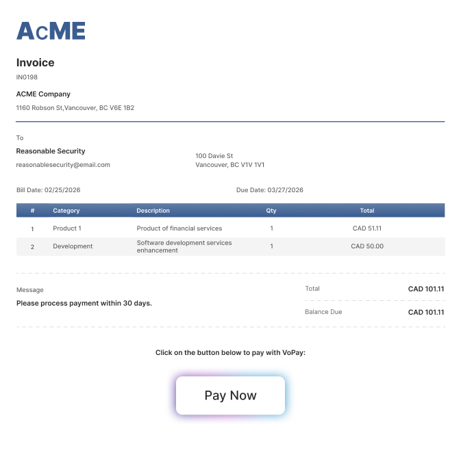 VoPay provides payment orchestration and financial operations technology that connects banking infrastructure, payment networks, and enterprise systems. The platform enables organizations to manage accounts receivable and accounts payable payment workflows while maintaining financial visibility and operational control within their existing systems.