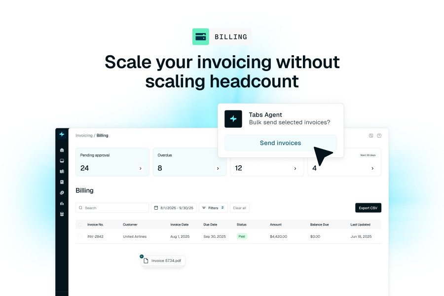 Tabs is the AI-native revenue platform for modern finance teams. We help companies streamline invoicing, collections, revenue recognition, and reporting through automation and agents. Regardless of your billing model or business complexity, Tabs provides a single system to manage your order-to-cash workflows with speed, accuracy, and transparency.