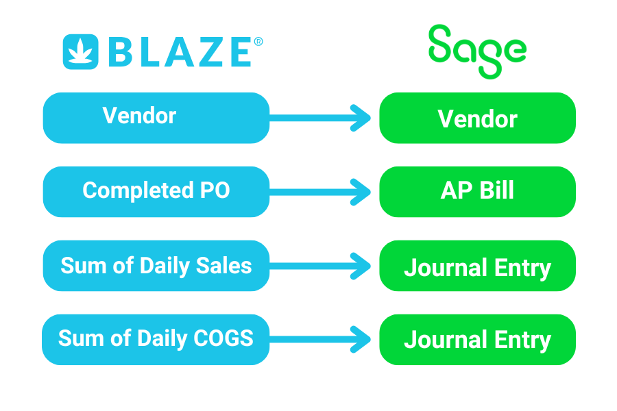 The BLAZE and Sage integration streamlines accounting for enterprise cannabis retailers by seamlessly syncing vendor profiles, purchase orders, daily sales, and daily cost of goods sold (COGS). This automation reduces manual data entry, minimizes errors, and accelerates financial workflows, allowing retailers to close their books faster. With detailed, real-time financial data available by store location, retailers can visualize performance across multiple stores and states, enabling informed decision-making, better financial oversight, and effortless scalability.