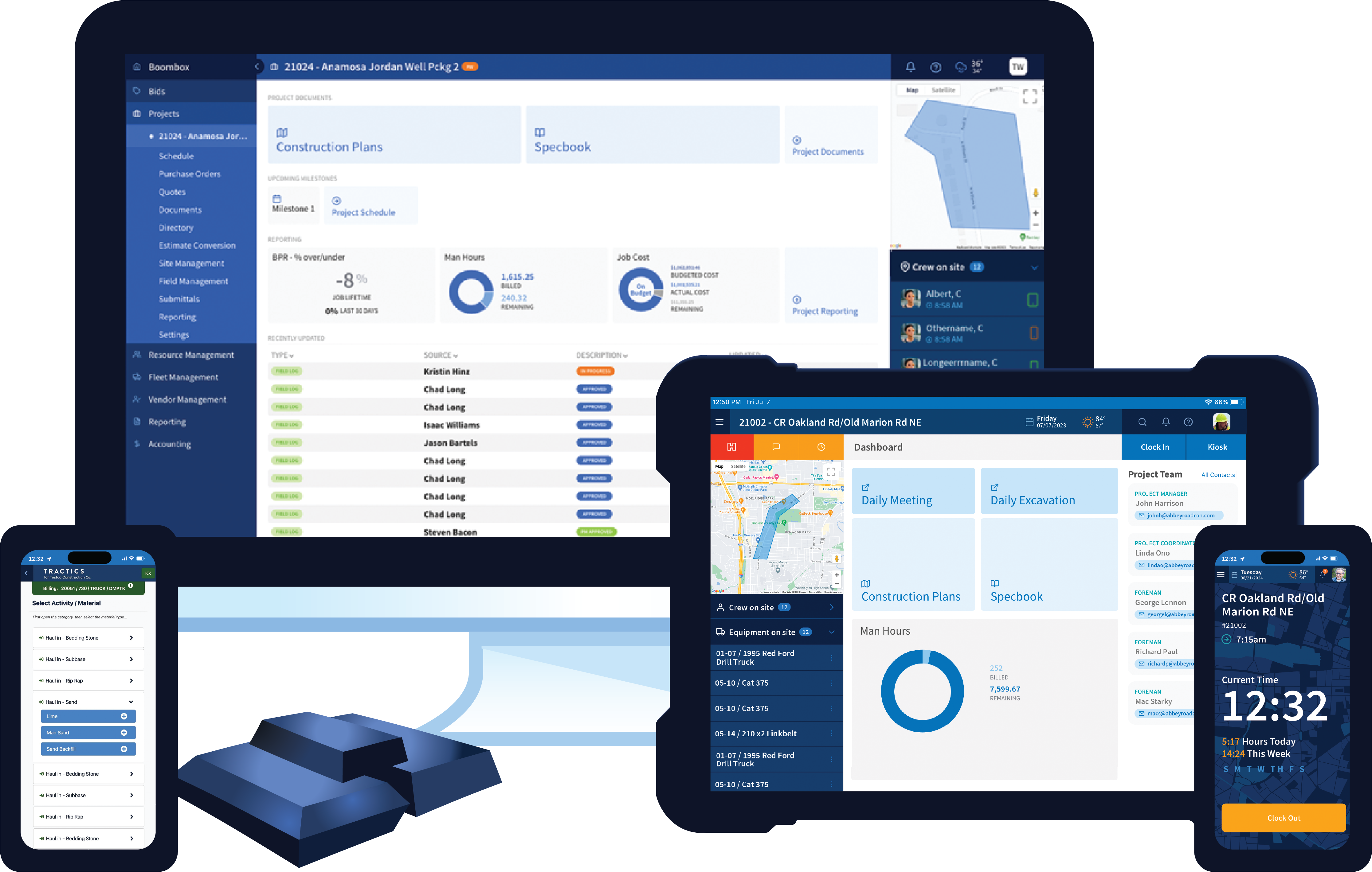 A comprehensive solution for heavy civil contractors, connecting crews, fleet and offices through real-time data to enhance project management. Tractics is changing the heavy/civil industry through next gen technology.