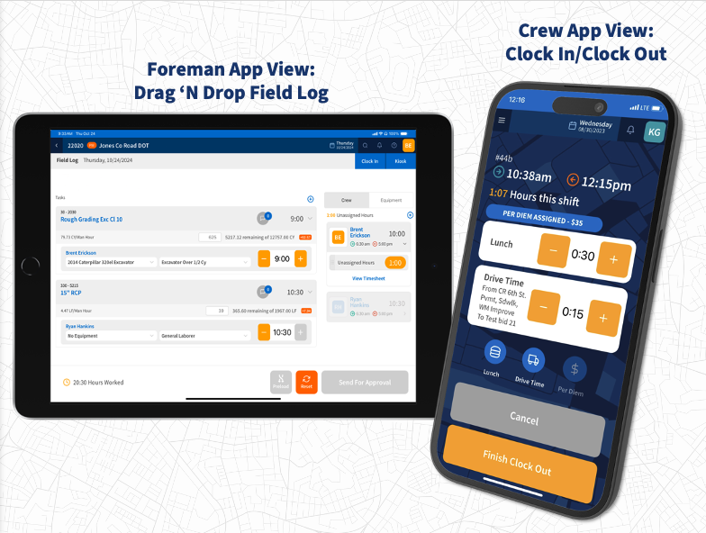 Keep crew, foremen, and office aligned with real-time updates on timesheets, project progress, and financial performance.