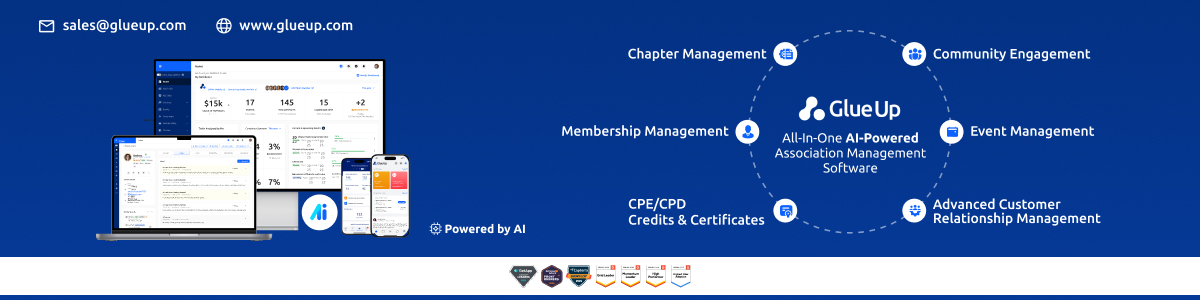 Glue Up is an award-winning engagement management platform designed to help member-based organizations like Associations and Chambers of Commerce build stronger communities, run successful events, and drive long-term growth.