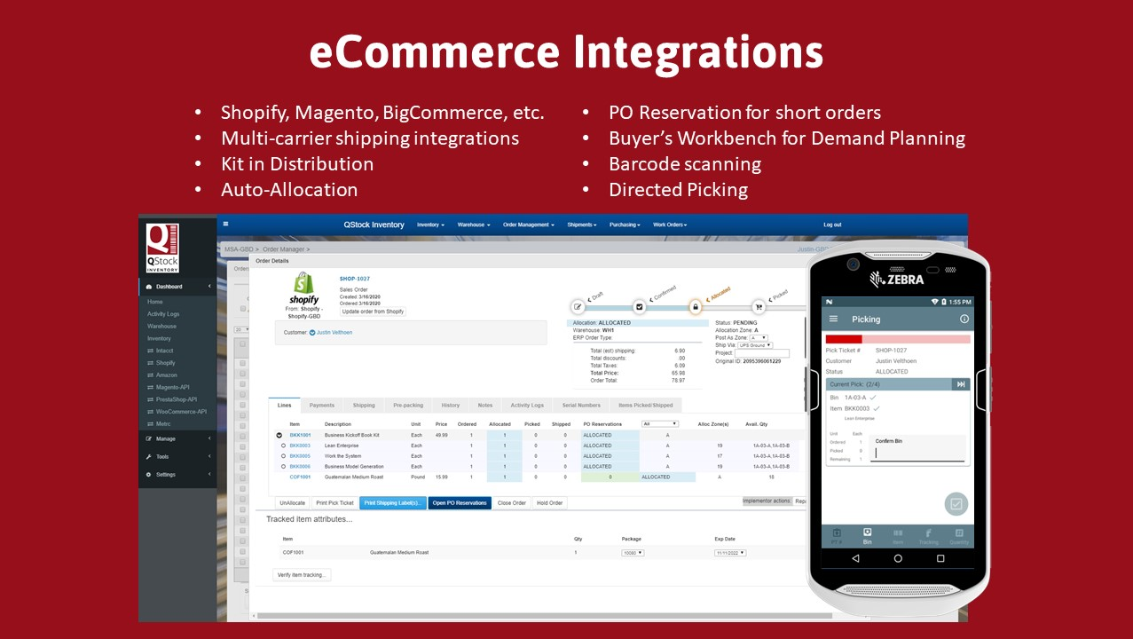 - eCommerce Enablement: Direct integration with eCommerce Carts like Shopify, Magento, WooCommerce, BigCommerce, PrestaShop and multi-carrier shipping integrations like Shipstation, Proship and ShippingEasy for retail and wholesale fulfilment.