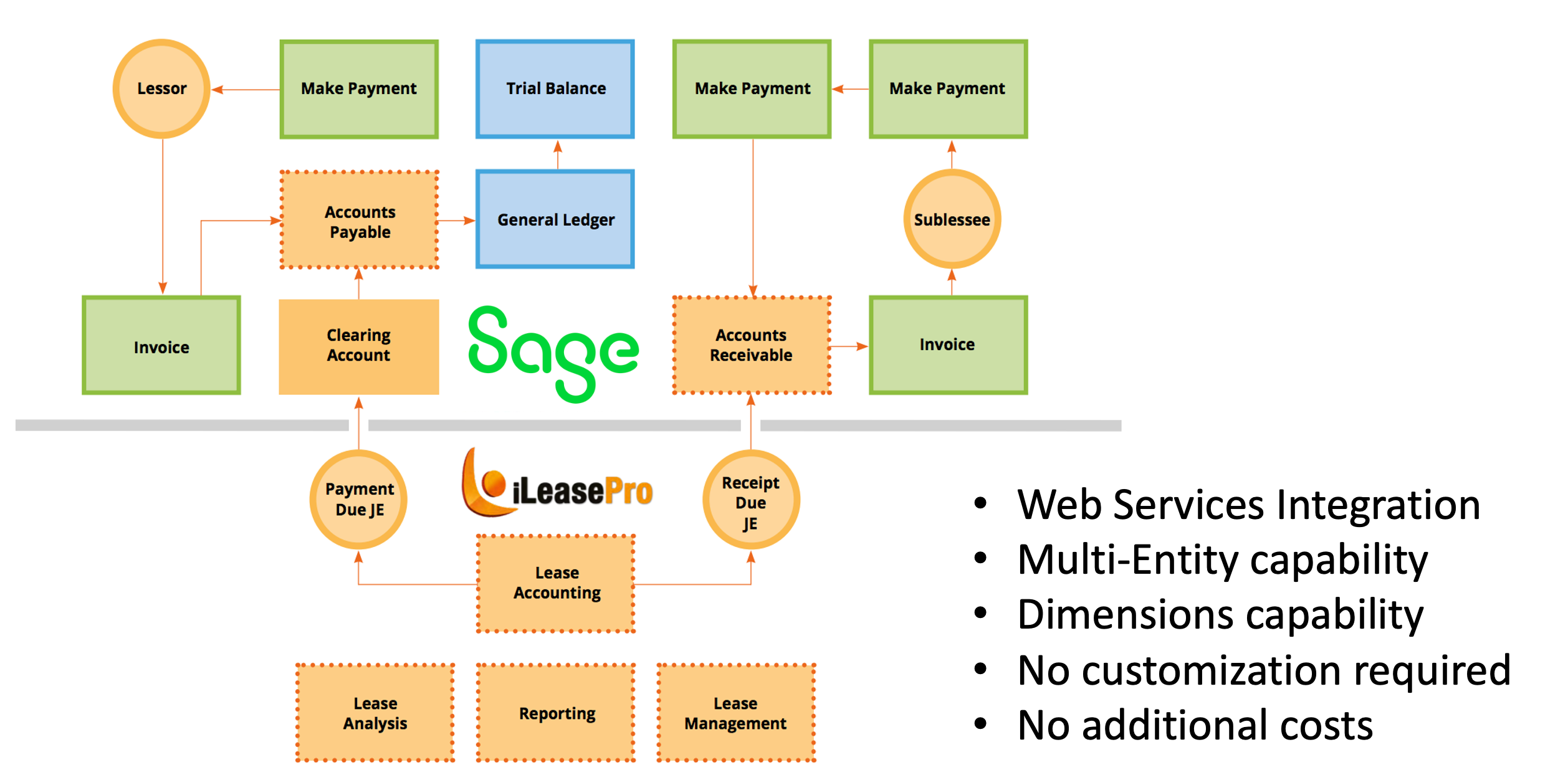 iLeasePro is fully integrated with Intacct to allow its users the ability to download and link Intacct Dimensions to your leases, automatically create the required Right to Use and Lease Liability journal entries for the ASC 842 changes with Dimensions and seamlessly upload the journal entries into your Sage Intacct General Ledger. iLeasePro also automatically creates monthly rent payments and variable payments that can be uploaded into your Sage Intacct AP Bill module.