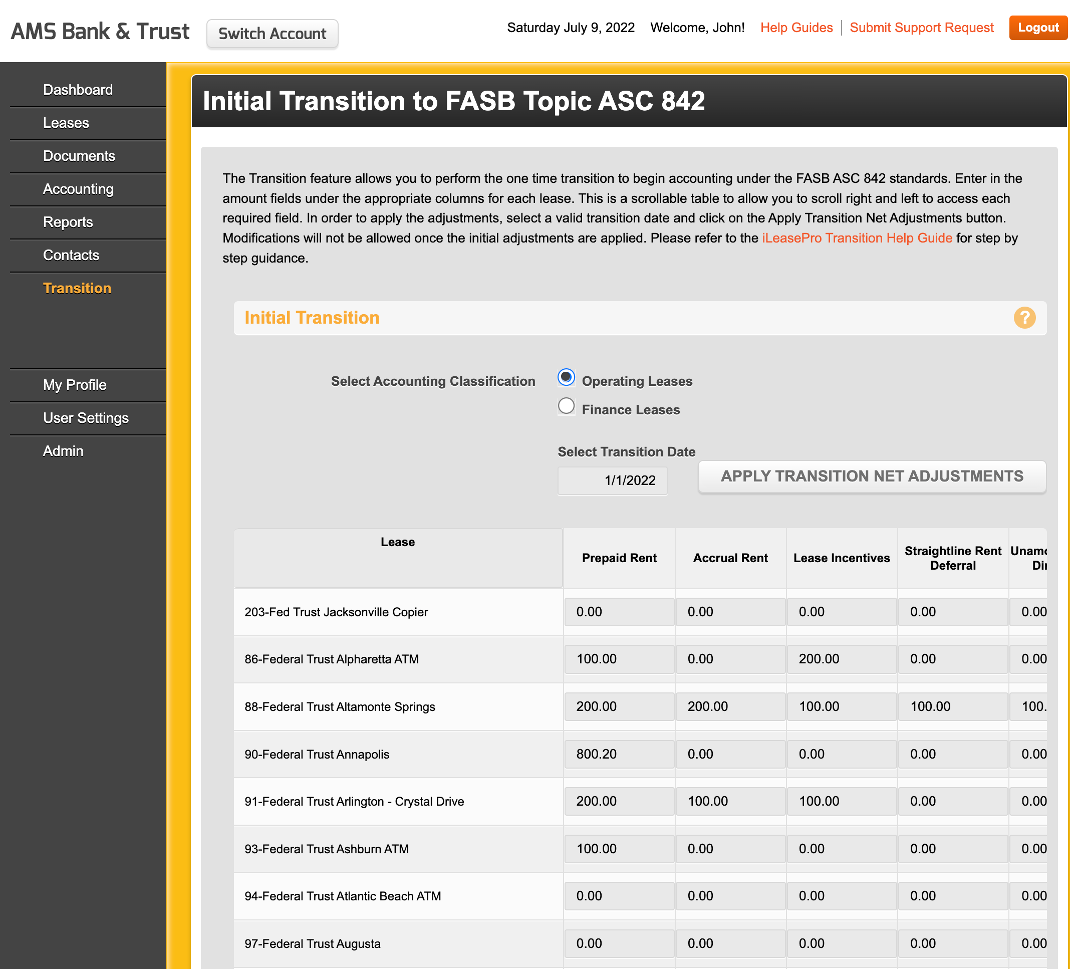iLeasePro Simplifies the adoption and transition to the ASC 842 Lease Accounting Compliance with features like;